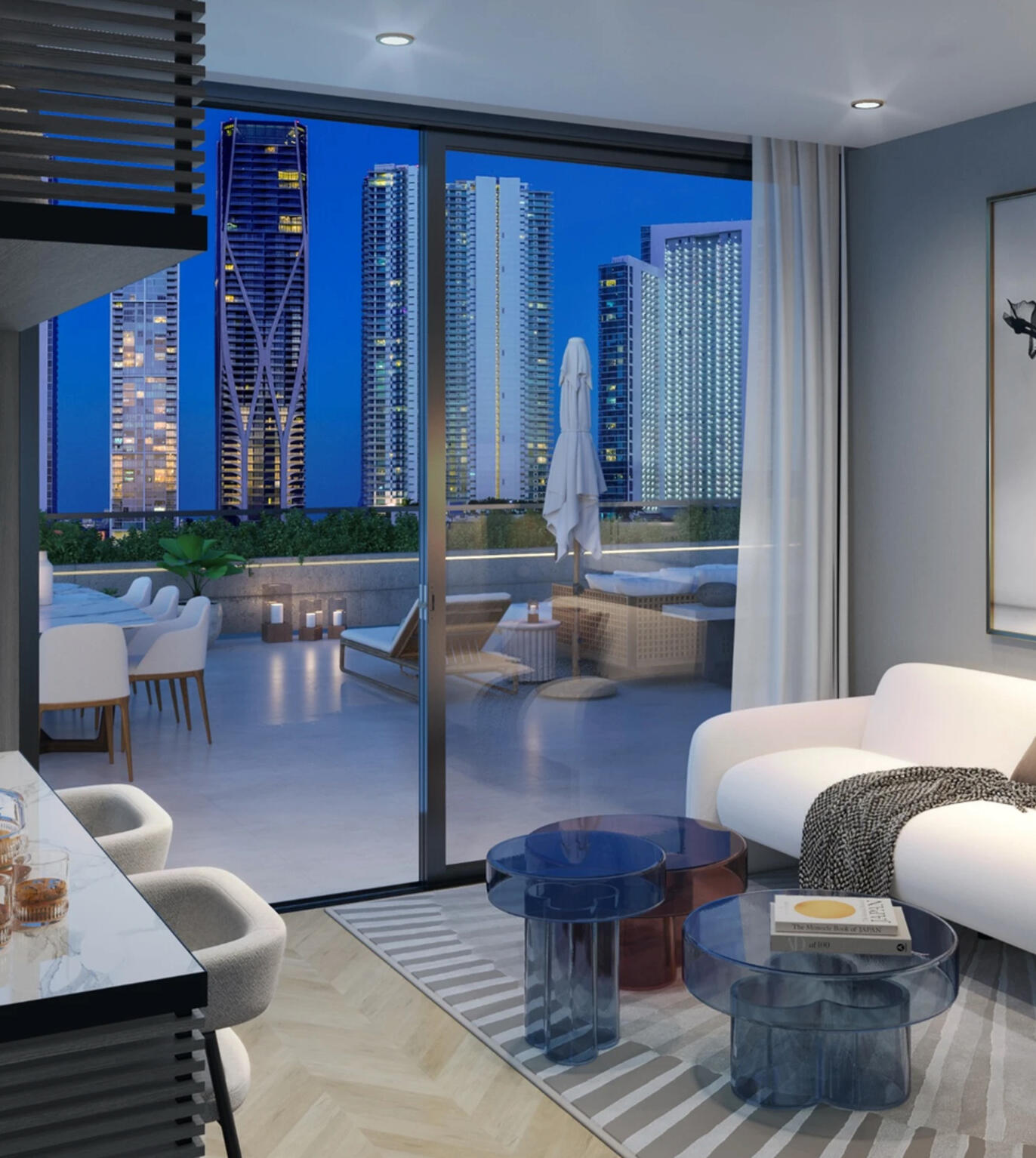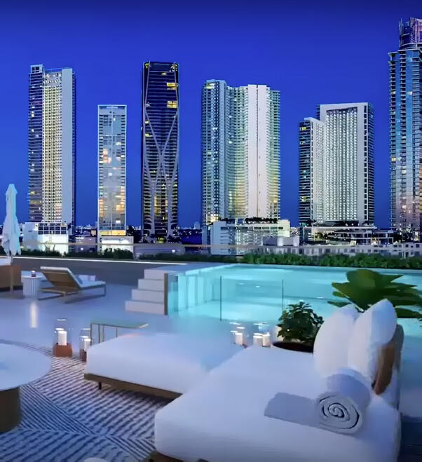con verdadera flexibilidad de vida.Esta torre de lujo de 44 pisos, fue diseñada por estudio de arquitectura de renombre internacional Seiger Suarez Architects e impregnada de atención artística. Todos los estudios y apartamentos de 1 dormitorio, totalmente acabados y amueblados, han sido cuidadosamente seleccionados.
